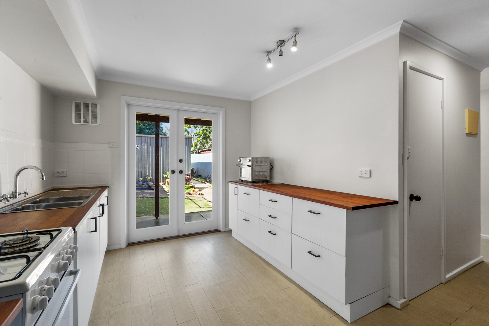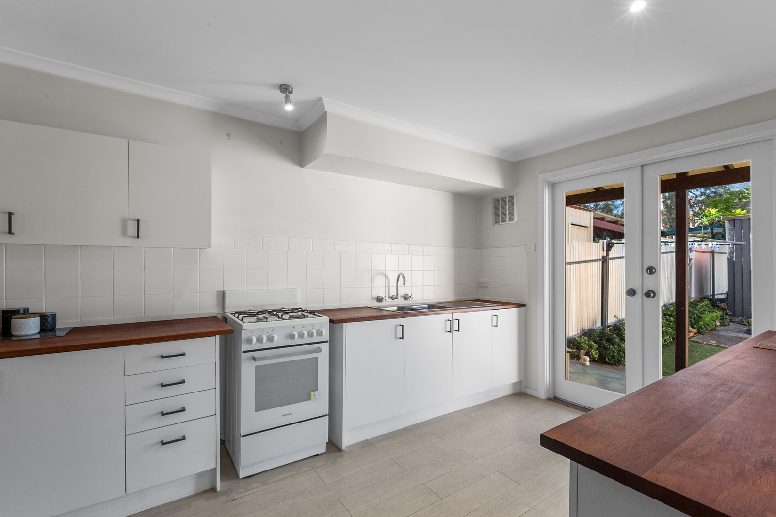 Step through the secure front garden or arrive privately via the gated rear carport, and you’re welcomed by a bright open-plan living and dining area. The modern kitchen impresses with its sleek design, abundant bench space and subtle French flair — perfect for cooking up a storm or simply enjoying your morning coffee as the sun streams through the double French doors.