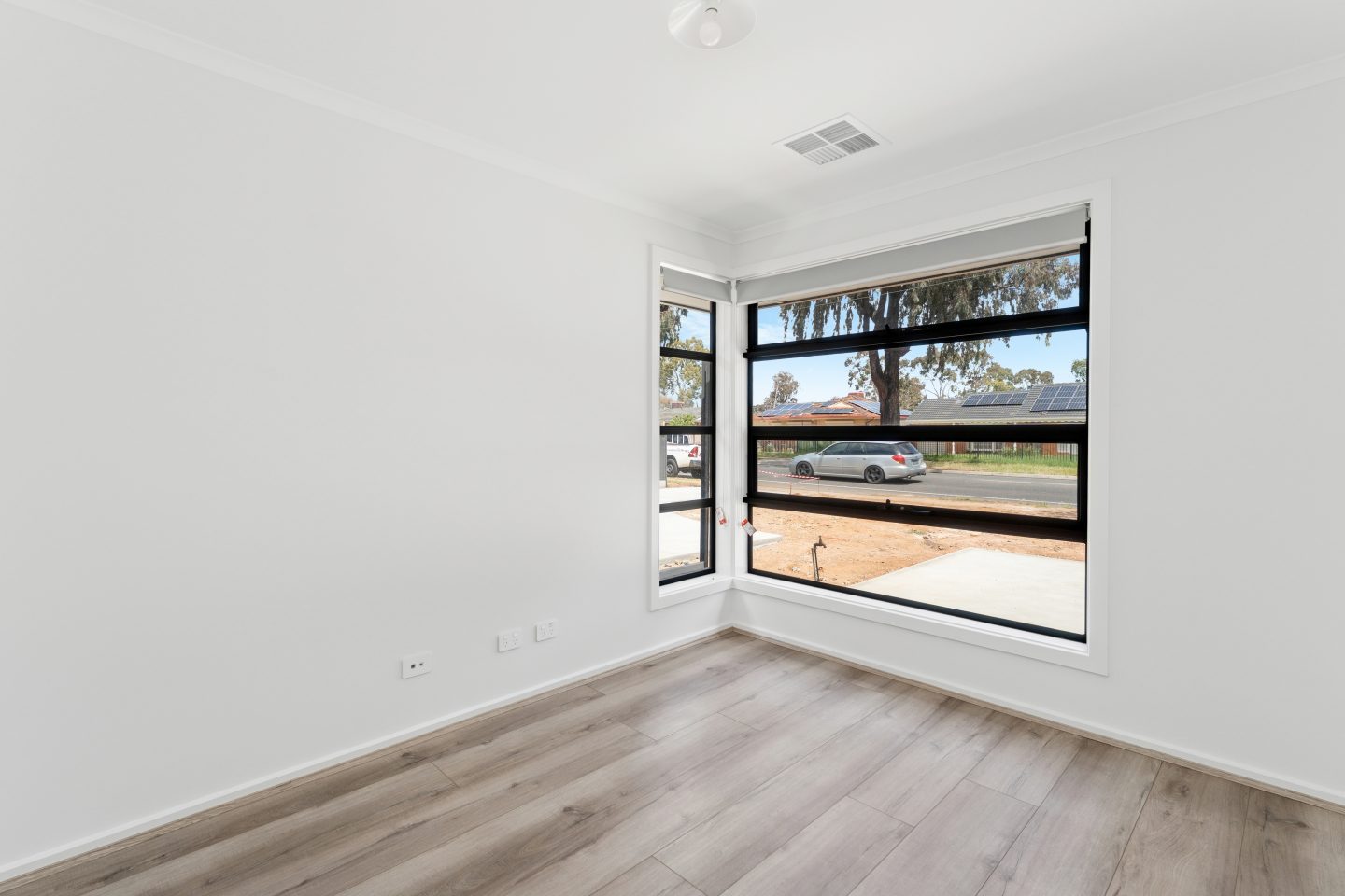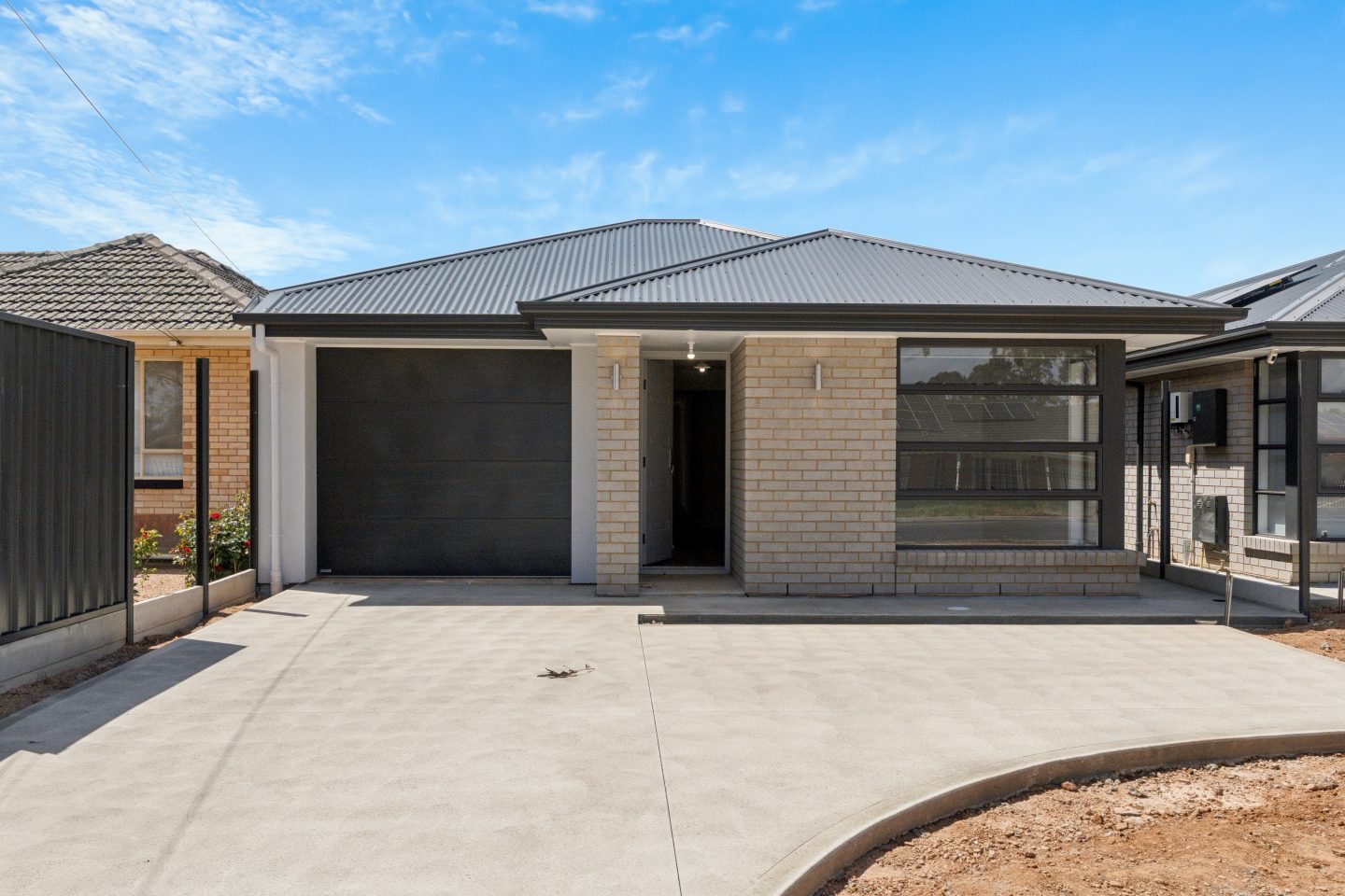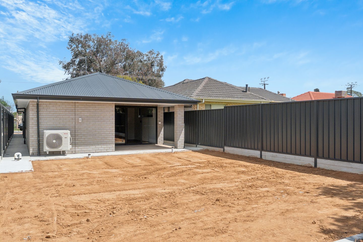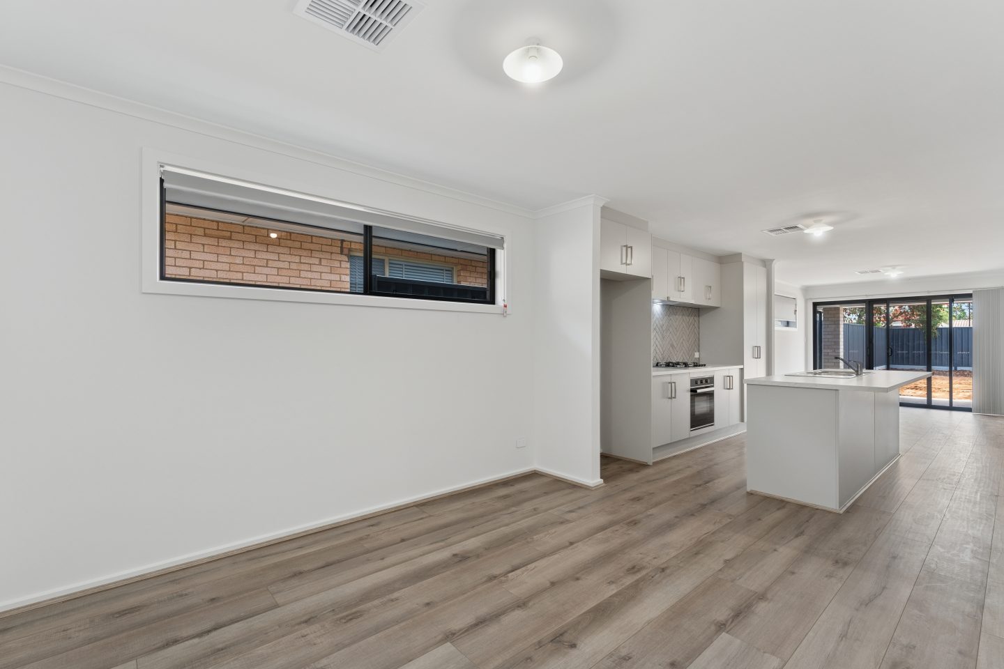 • Light-filled living area with sliding doors opening to a secure backyard