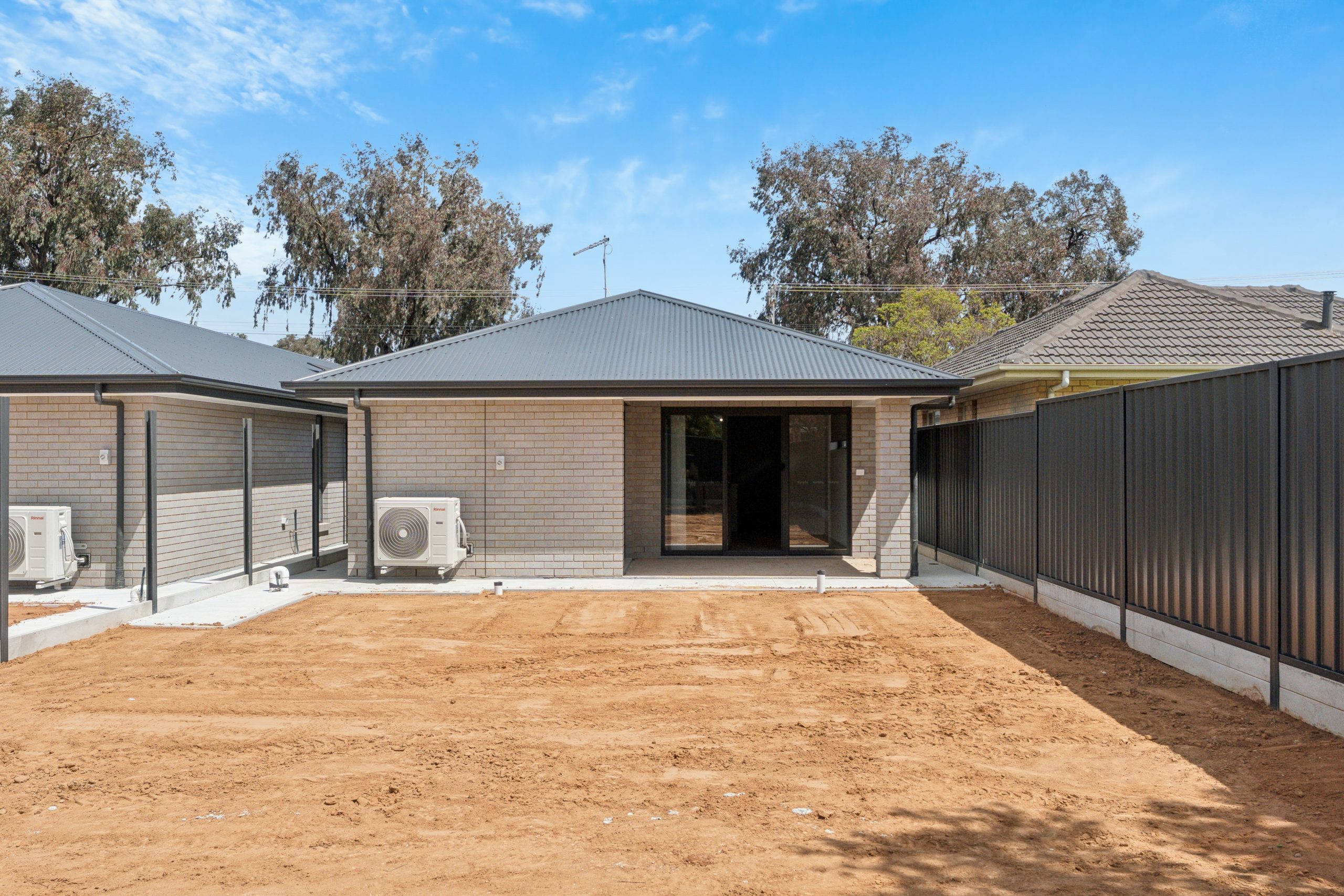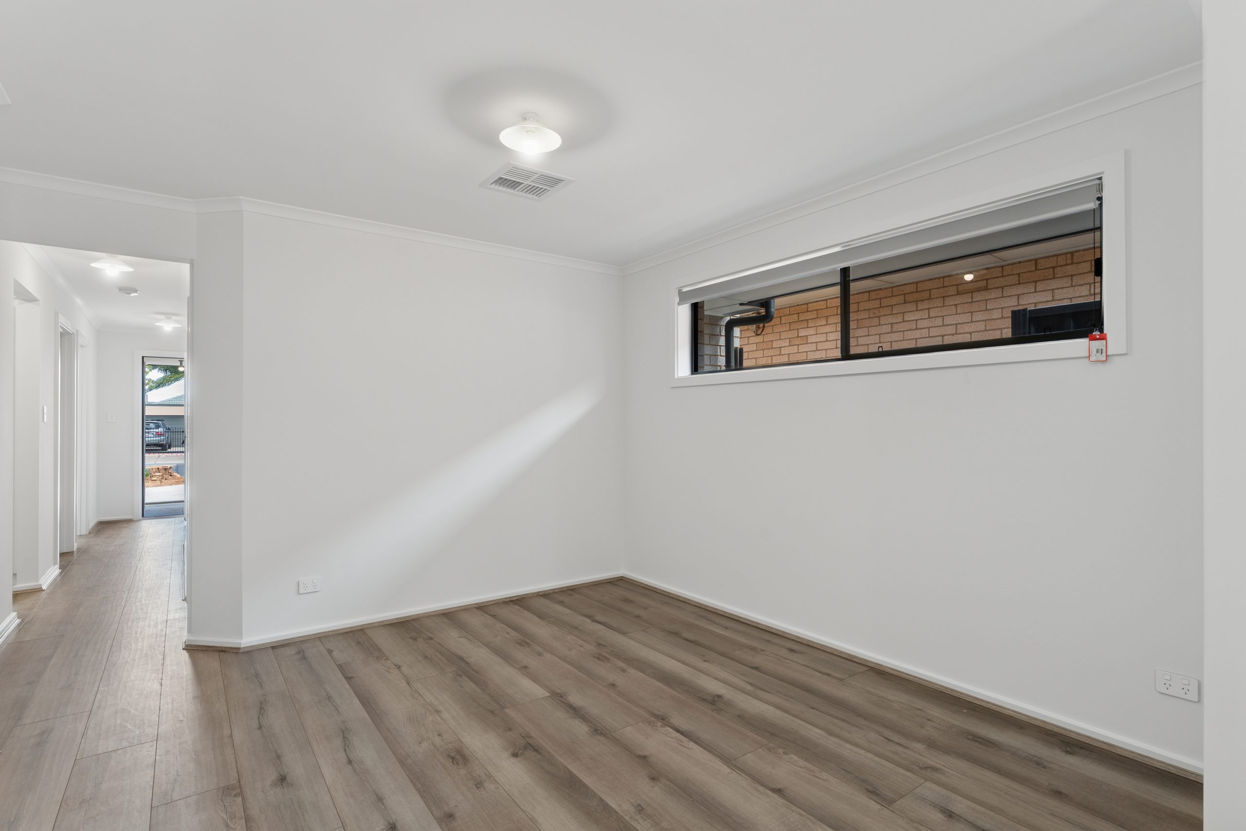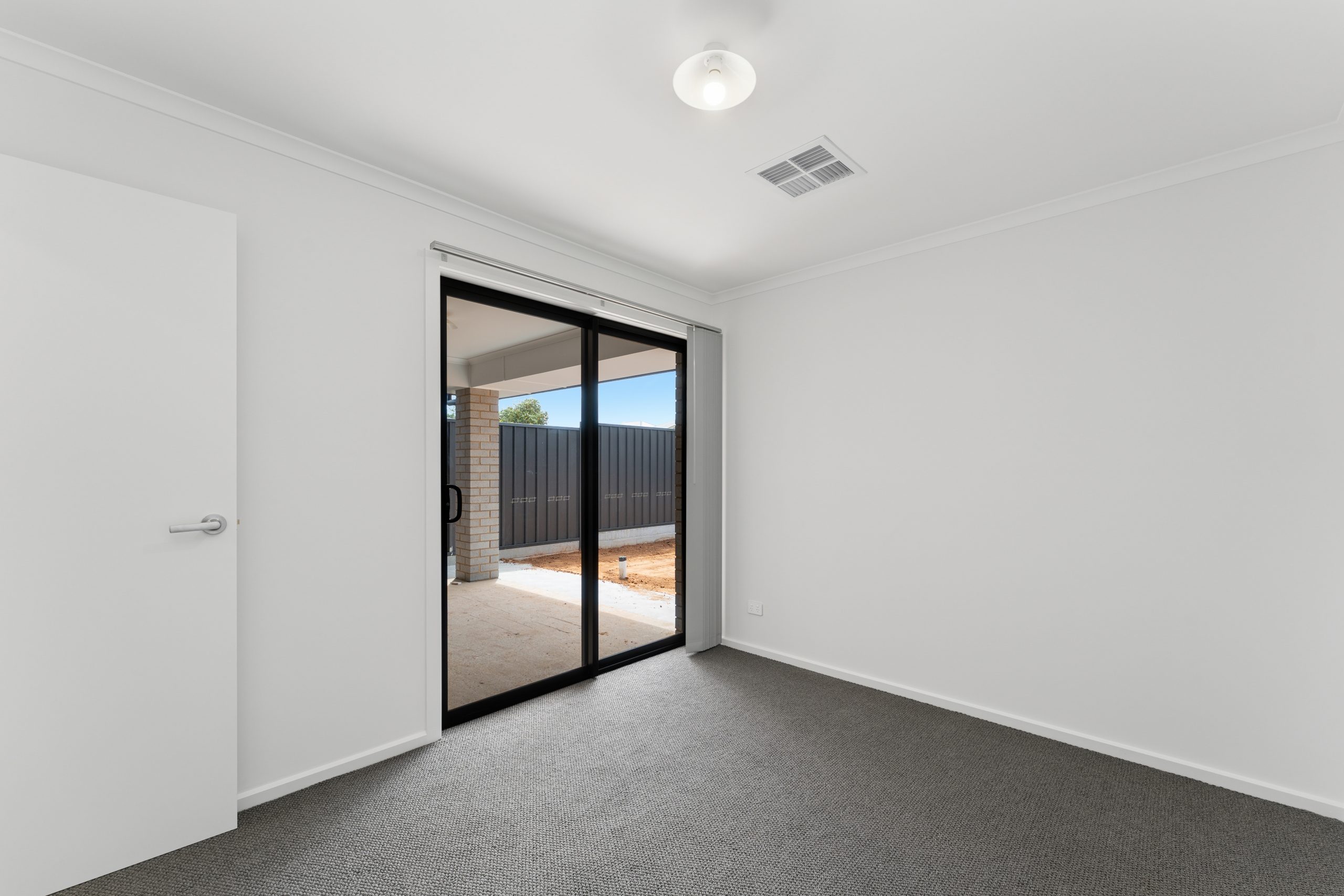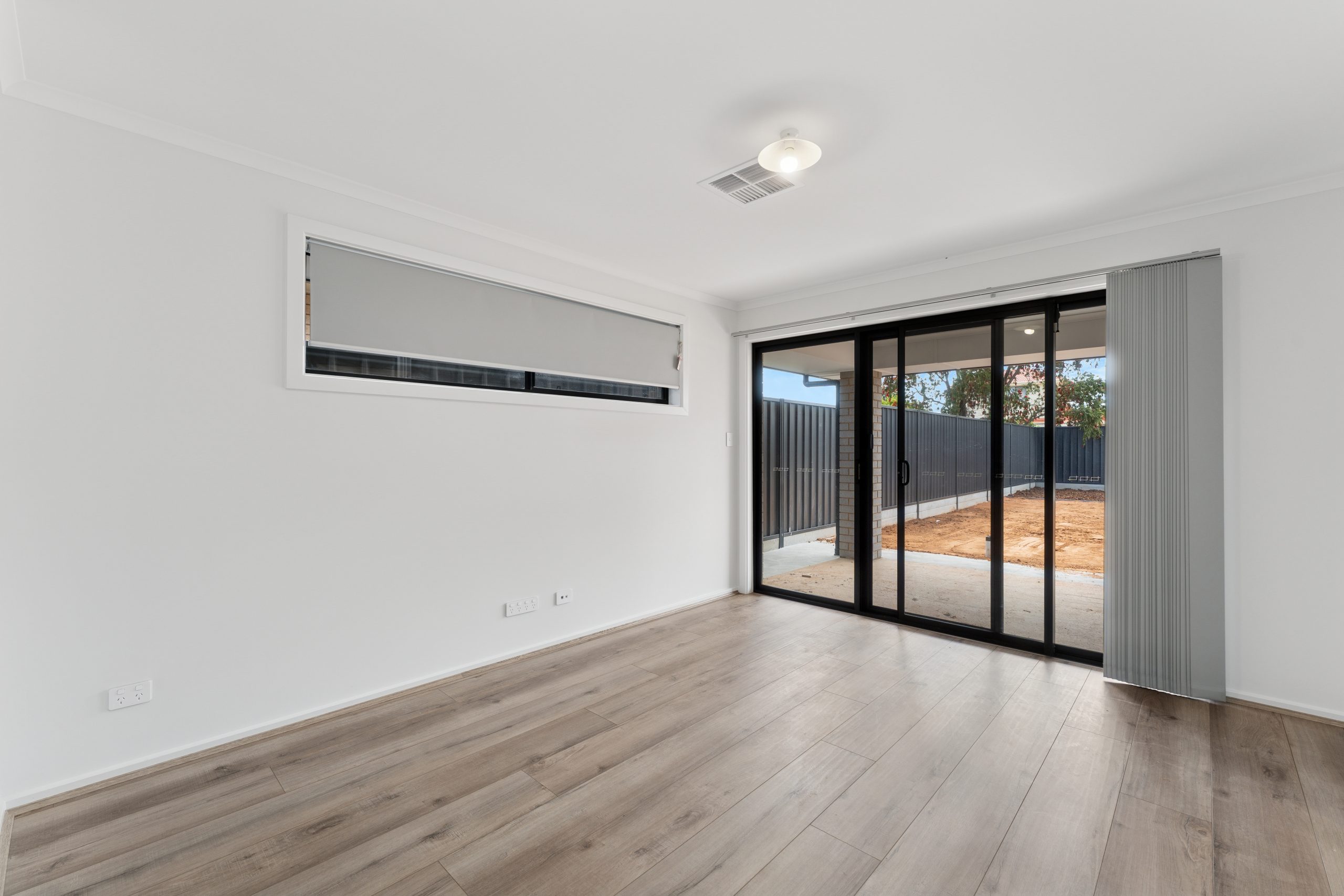 • Light-filled living area with sliding doors opening to a secure backyard